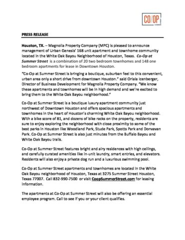 Co-Op at Summer Street Press Release