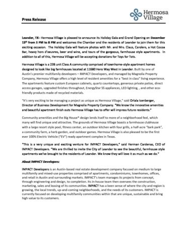 Press Release Hermosa Village Holiday Gala